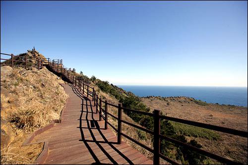 图集介绍:济州岛城山日出峰风景图片。城山日出峰是耸立在济州岛东端的巨大岩石。当你站在峰顶上可看到海岸线辽阔的大海和草原上壮丽的田园风光。而且,在这里你可以感受到迎面吹来的海风,很是惬意!