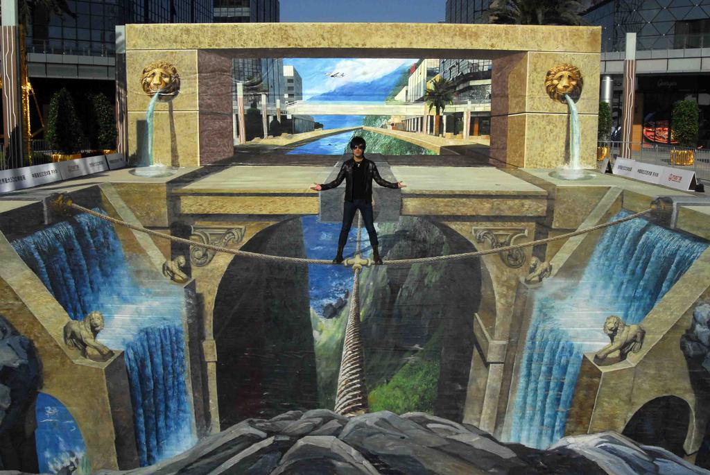 图集介绍:创意街头3D涂鸦欣赏图片。相信你一定见过在全世界都十分风靡的一种绘画方式,即3d立体画吧~全世界的立体画家纷纷走上街头,用粉笔、铅笔、水彩笔等各种画笔,描绘出一幅幅以假乱真的立体世界来。现在就让我们一起来看看这些形形色色的创意街头3d立体画艺术品吧。