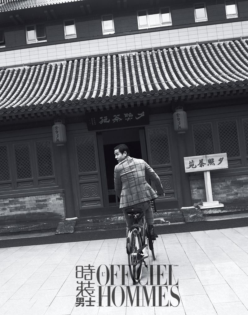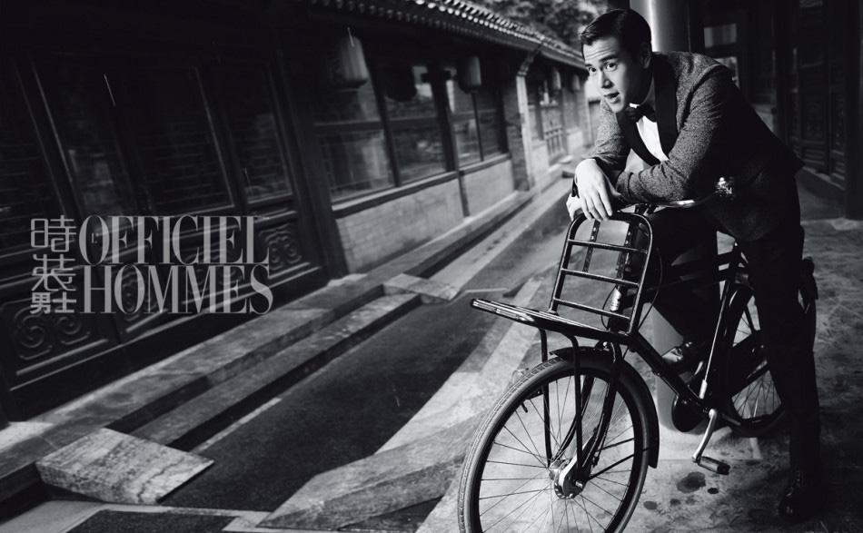 图集介绍:彭于晏复古演绎经典绅士图片。彭于晏受邀《时装男士》杂志拍摄11月封面大片。在时尚大片中演绎复古造型,经典偏分发型,绅士正装大玩复古自行车、老式打字机,颇有年代电影感觉。