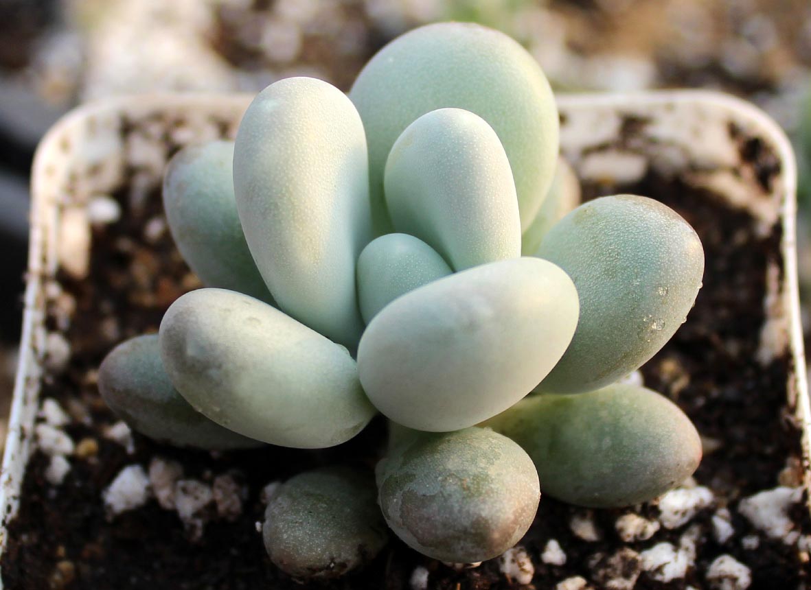 图集介绍:肉肉植物之星美人图片。星美人就像它看来的那般,令人喜欢。质叶的浑圆可爱,色彩的素洁淡雅。而用叶片扦插所产生的幼株叶片排列紧凑,犹如一粒粒珠圆玉润的卵石,非常的美丽动人!而且,多肉植物的星美人也是室内盆栽的一大亮点呢!