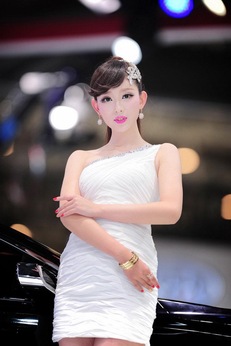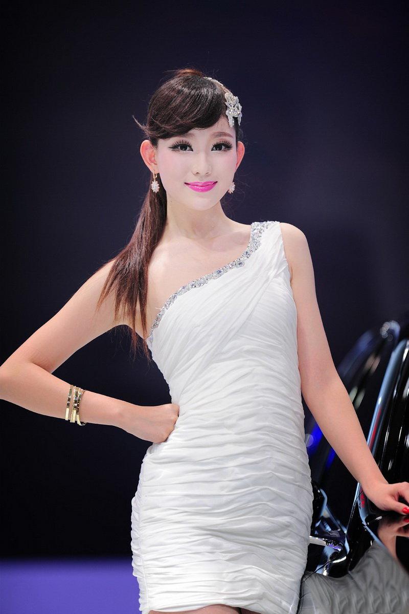 图集介绍:北京车展上除了性感车模以外还有超甜美风格的车模~~东风风神甜美车模图片,白色礼服下衬托的甜美车模~~真是怎么看怎么甜呢~如同萝莉一样甜美笑容,身材也是一级棒的~~