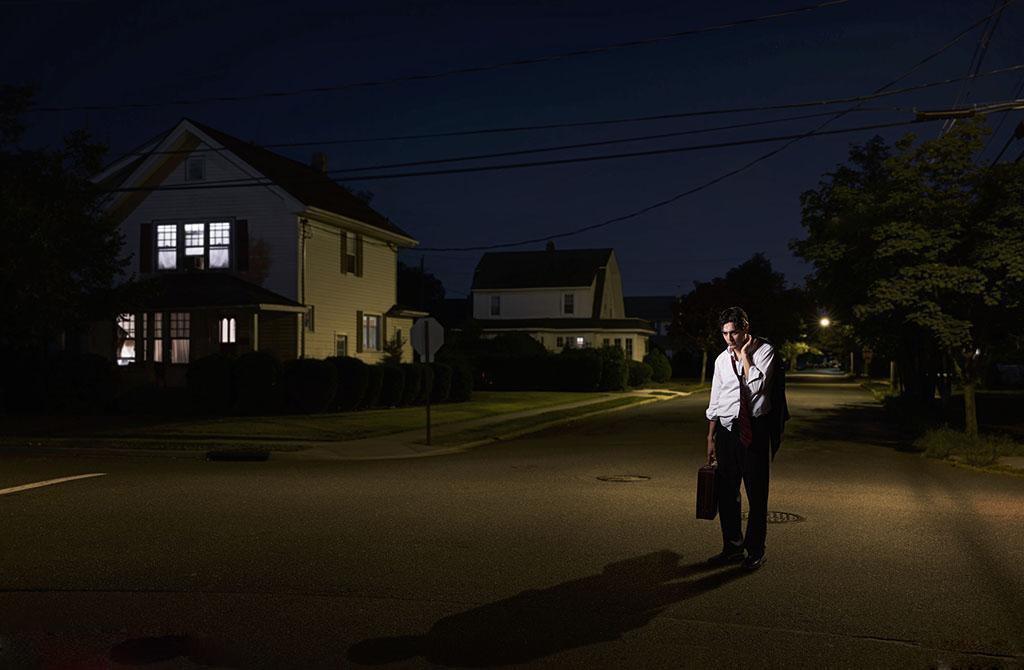 路灯下男生失落背影