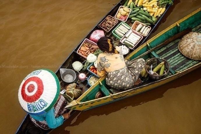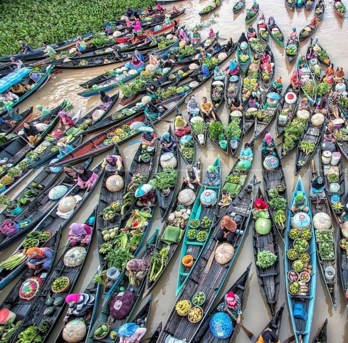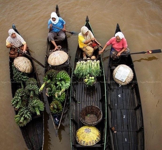 图集介绍:印尼传统的水上集市图片,它集合了印尼传统的水上市场的面貌,让你在购物的同时还可以感受当地人淳朴自然的风俗文化,也成为游客必到的一个著名景点。
