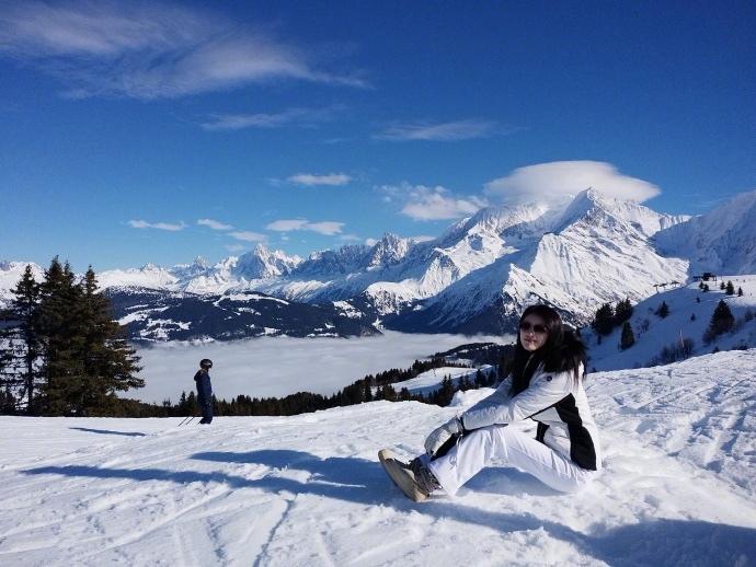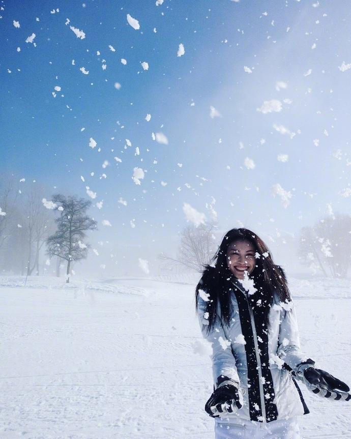 图集介绍:何穗冬日滑雪活力写真图片,照片中,她穿着白色的滑雪服坐在雪地上,一双长腿占满了屏幕。她表示自己玩到没力气滑下来,被教练公主抱下山。