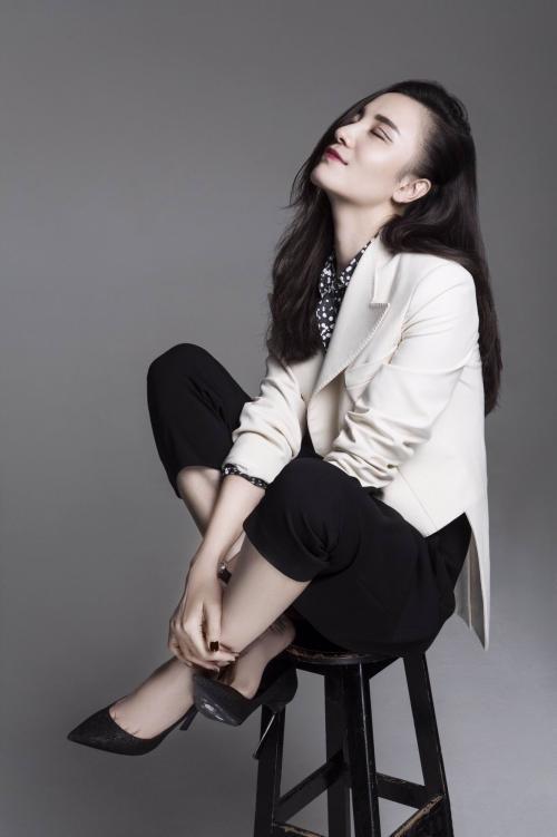 祝绪丹亮片西装裙时尚气质写真