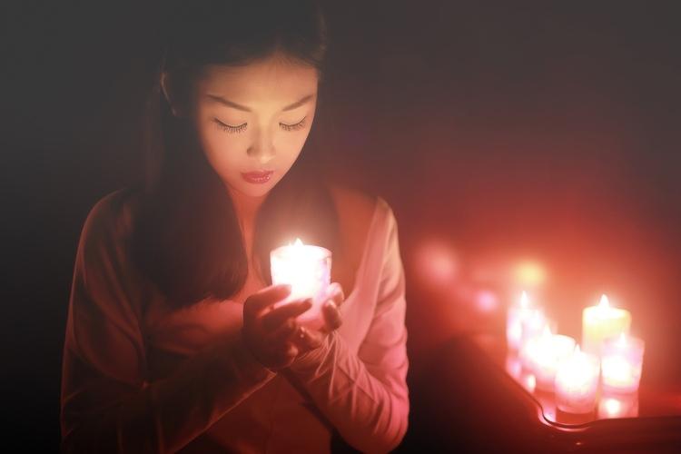 烛光里的思念意境女生