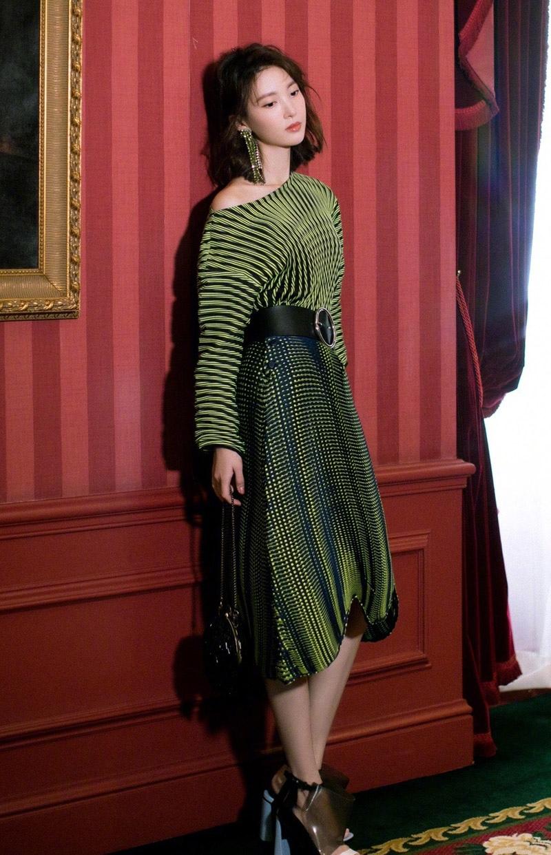 图集介绍:金晨性感露肩迷人写真图片,金晨受邀出席三宅一生ISSEY MIYAKE 2018秋冬大秀,小露香肩尽显魅力小女人的婉约气质。