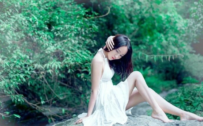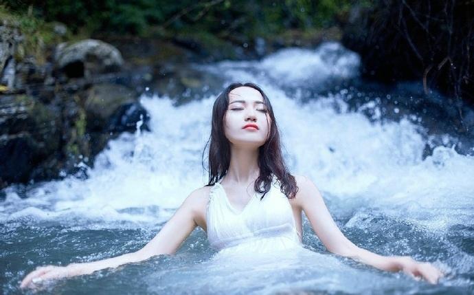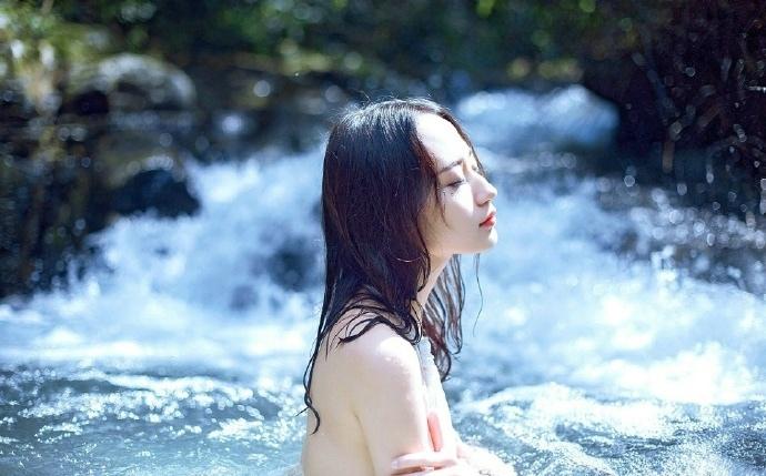 性感露背长裙美女小溪湿身写真