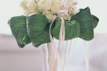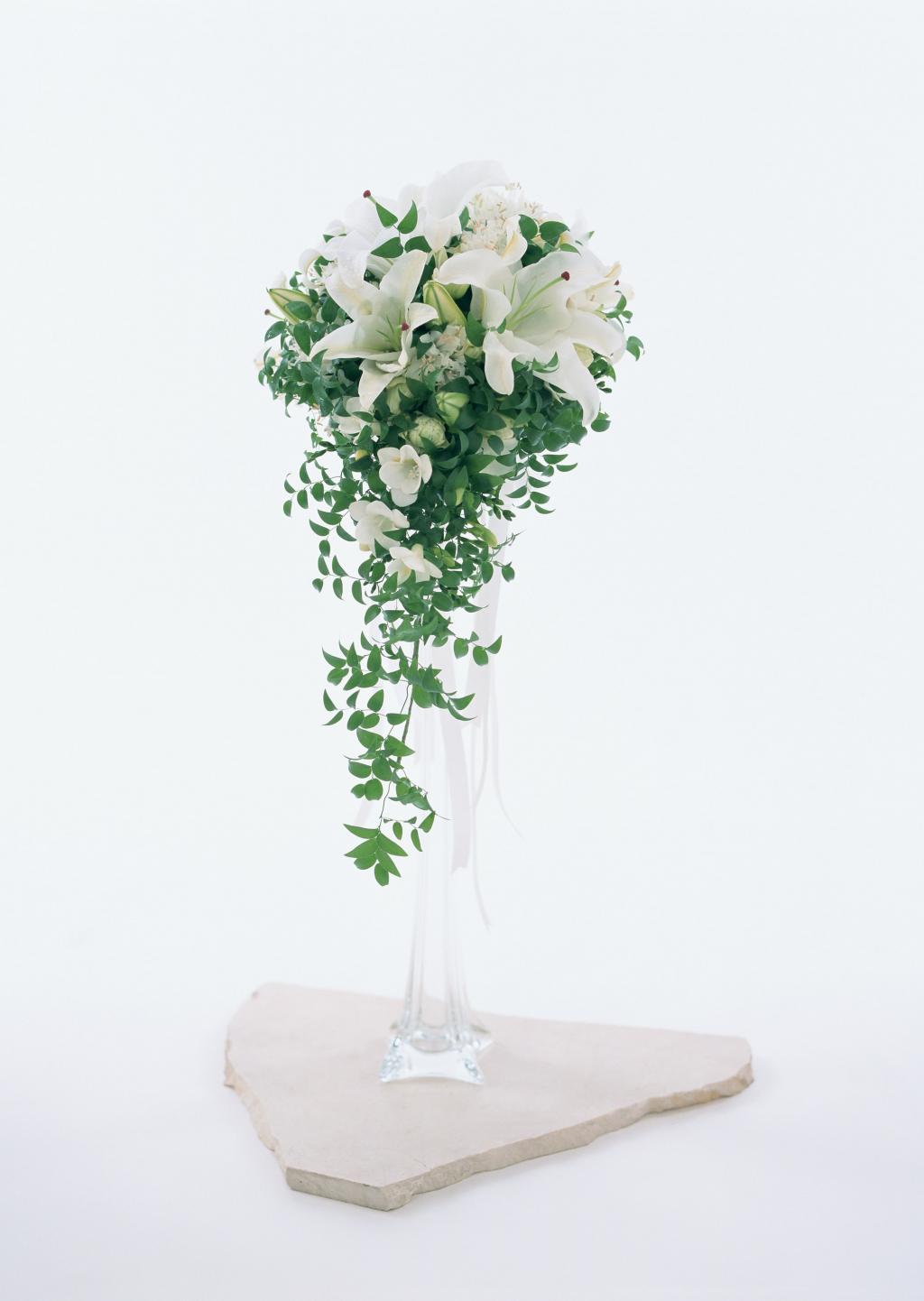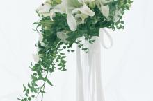 图集介绍:唯美百合插花,百合的花瓣是嫩白色的,中间还带着一条淡褐色的线,使百合不那么单调。