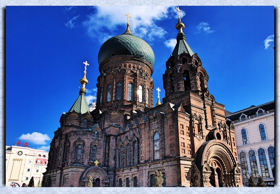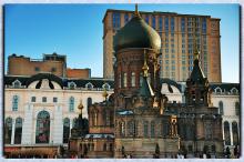 图集介绍:圣索菲亚教堂位于哈尔滨市内,是远东地区最大的东正教堂,通高53.35米,占地面积721平方米,是拜占庭式建筑的典型代表。