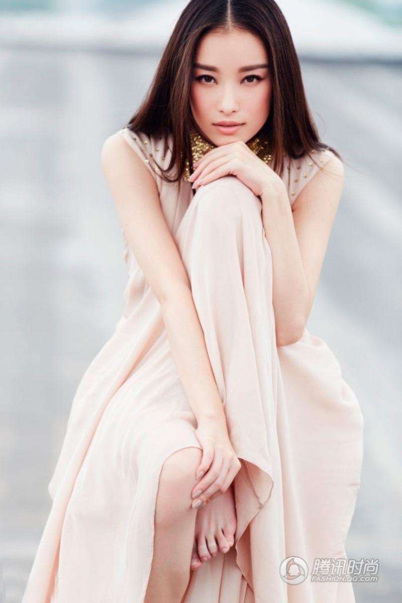 倪妮性感吊带露肩长裙优雅妩媚时尚写真