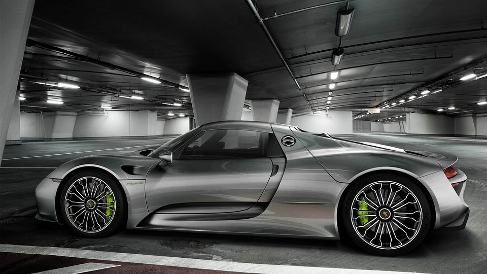 银色保时捷918超级跑车