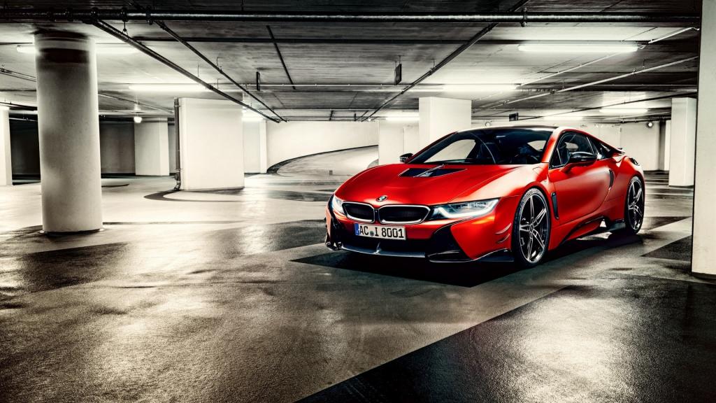 红色的宝马BMW i8跑车汽车