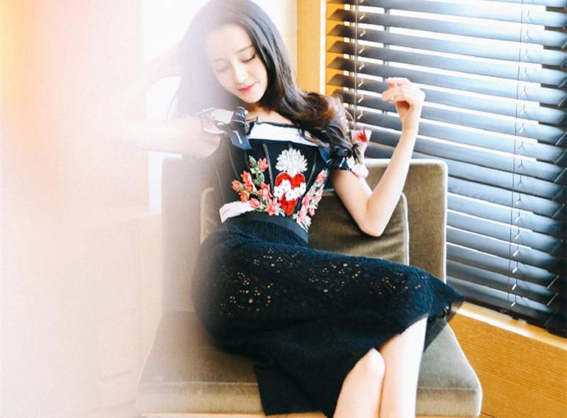 迪丽热巴黑色吊带裙性感写真