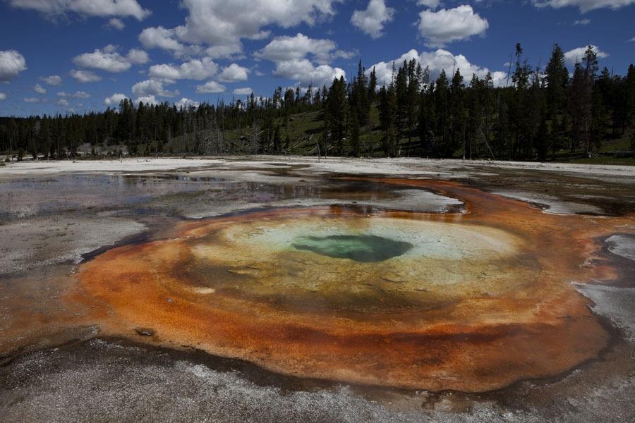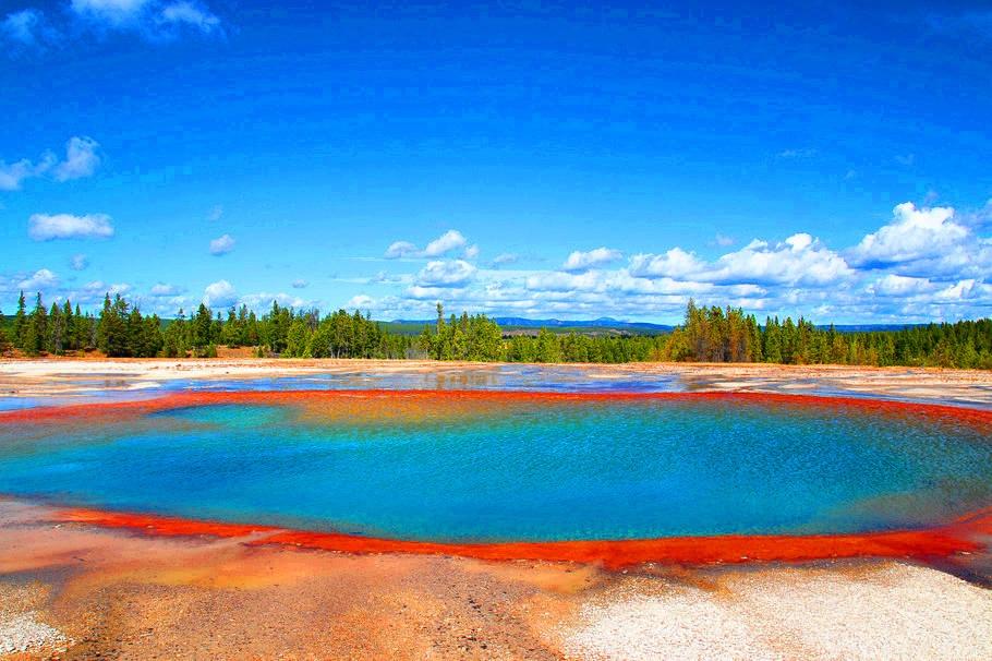 图集介绍:黄石公园大稜镜温泉美丽风光,又称大虹彩温泉,位于黄石国家公园,是美国最大,世界第三大的温泉。