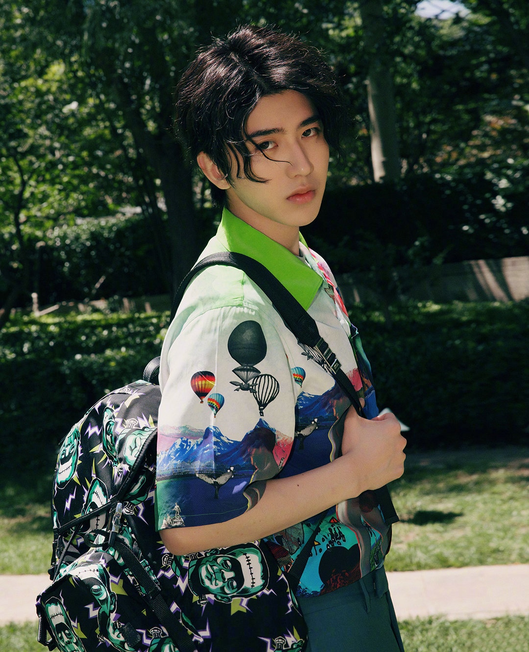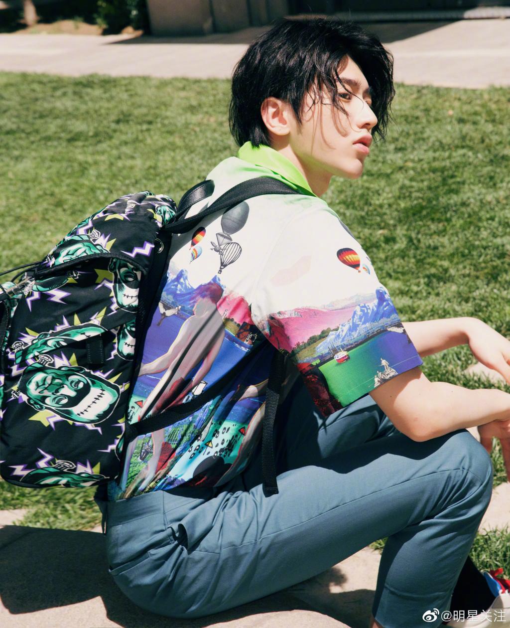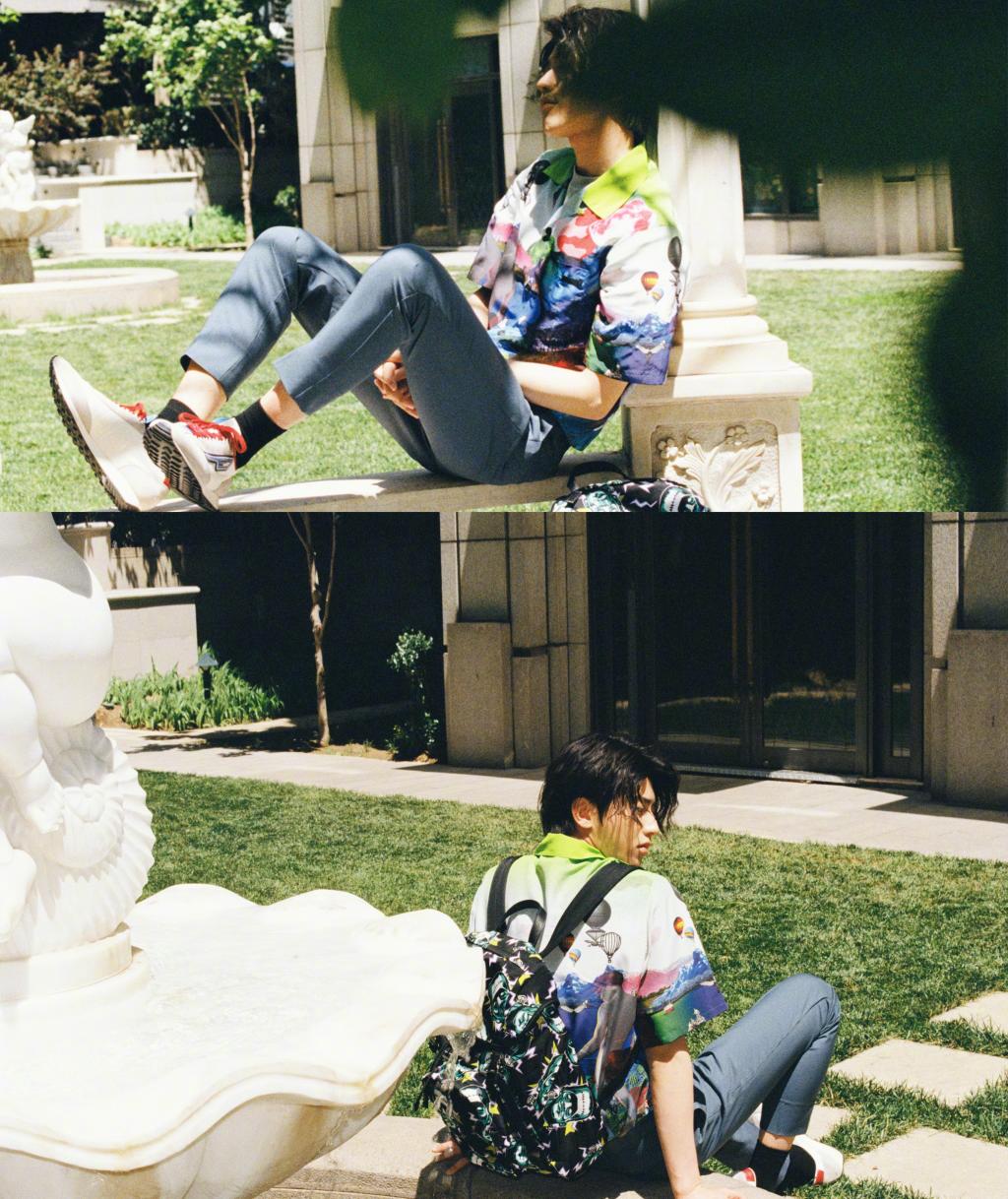 图集介绍:蔡徐坤最新清新大片,身着Prada2019春夏系列搭配印花双肩背和白色运动鞋,阳光下的文艺boy,这样的小哥哥你pick吗?