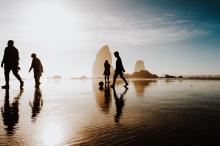夕阳下的河流和大海