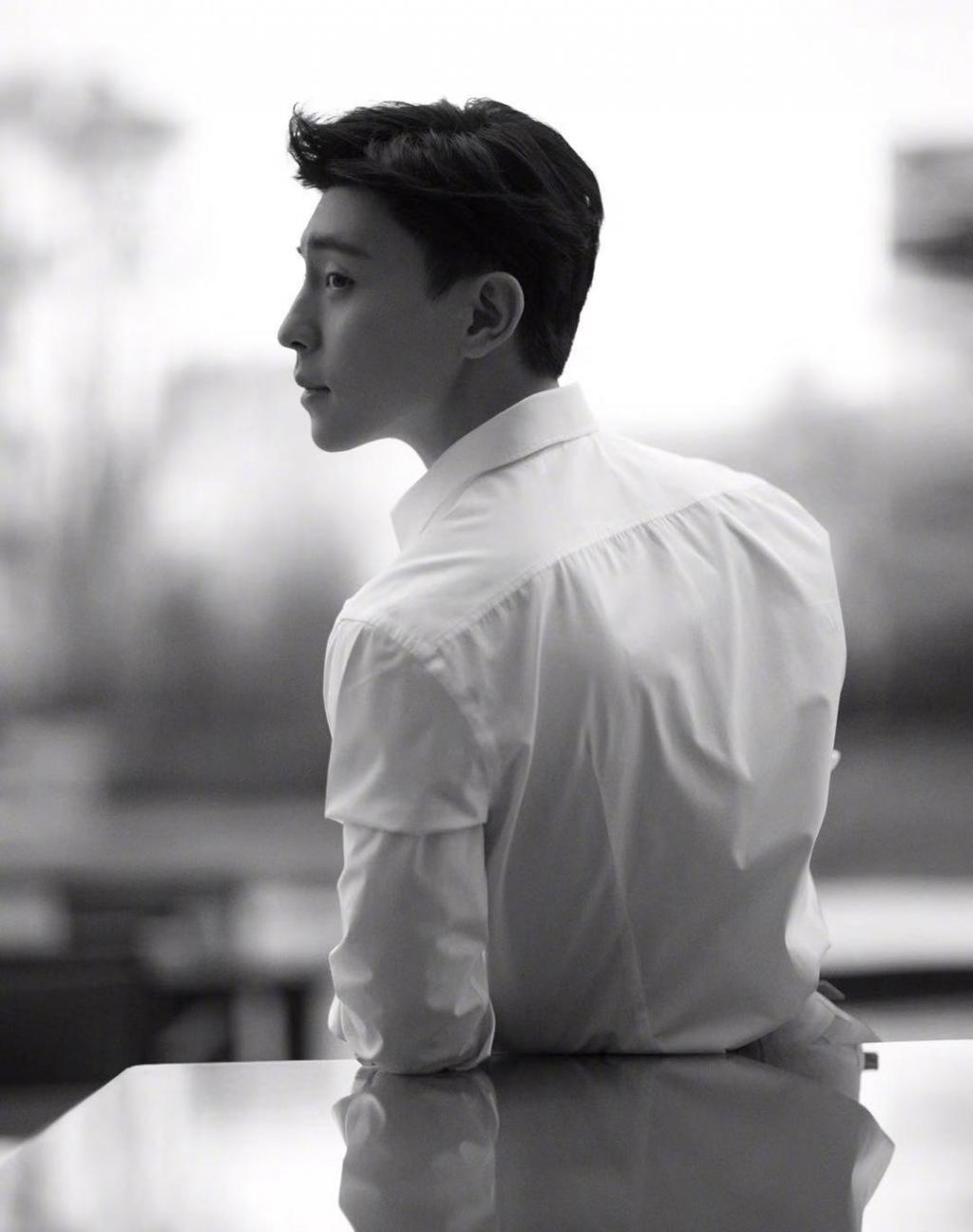邓伦白衬衫竹林清新写真
