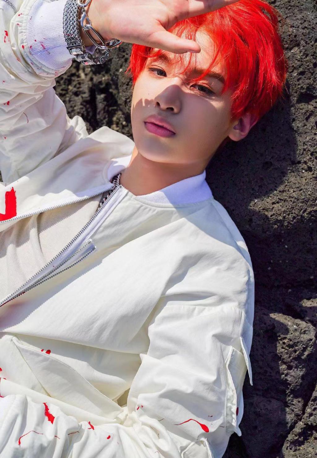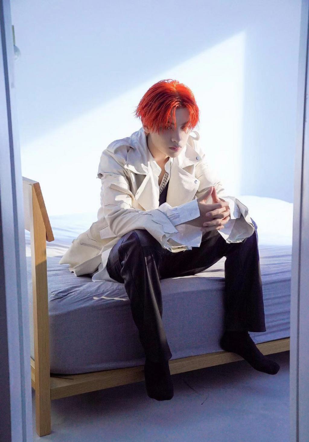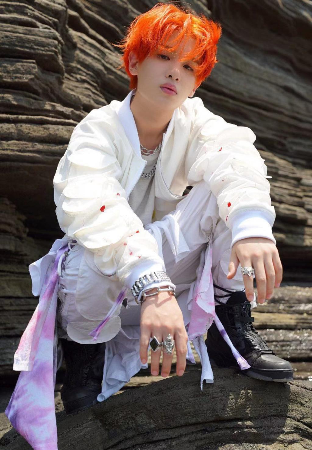 黄明昊帅气的橘色发型写真