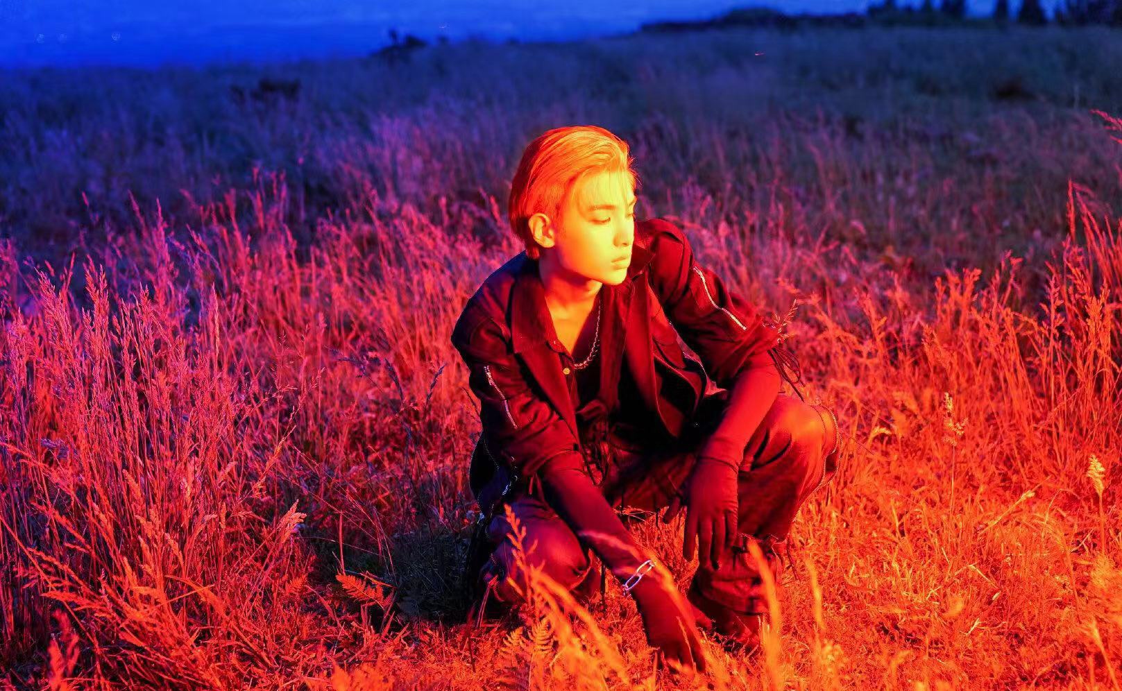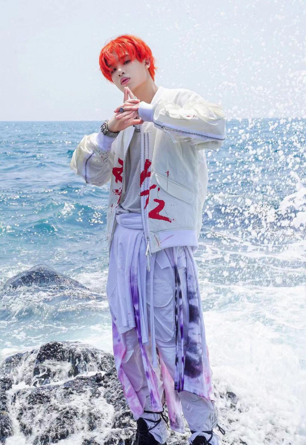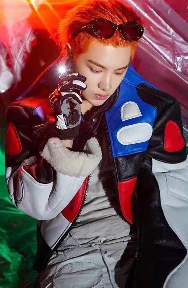 黄明昊帅气的橘色发型写真