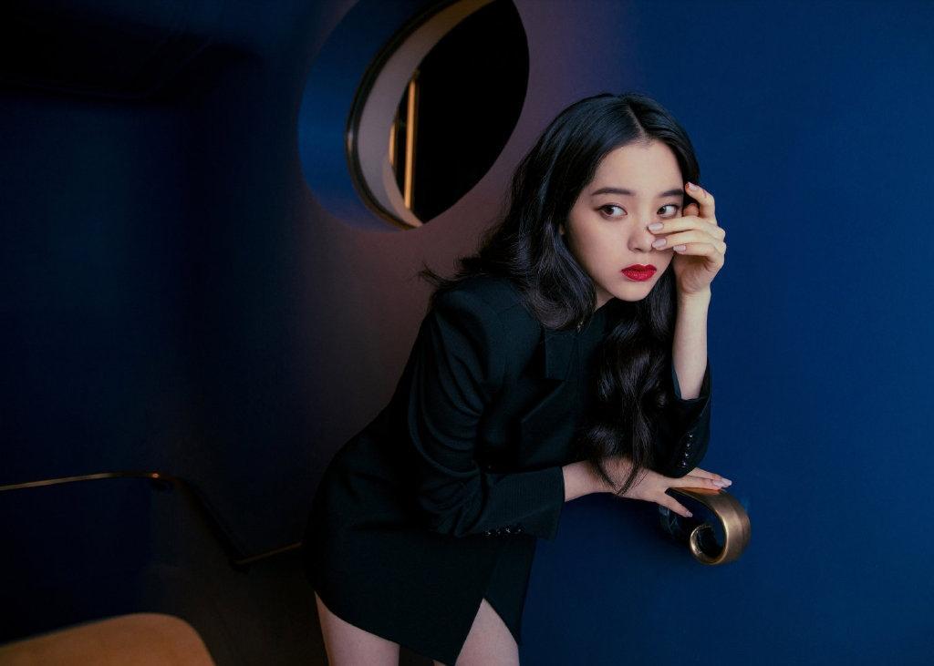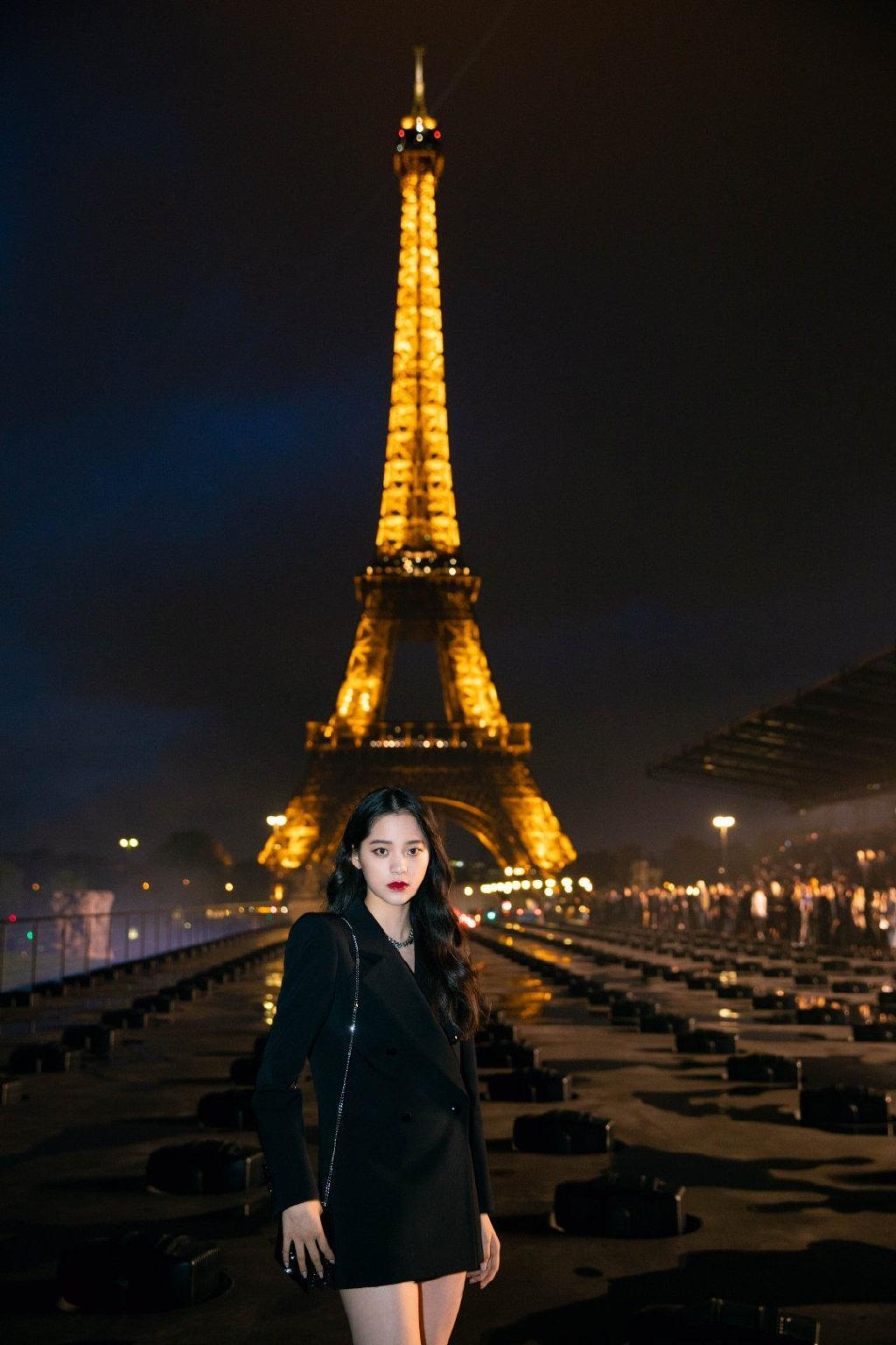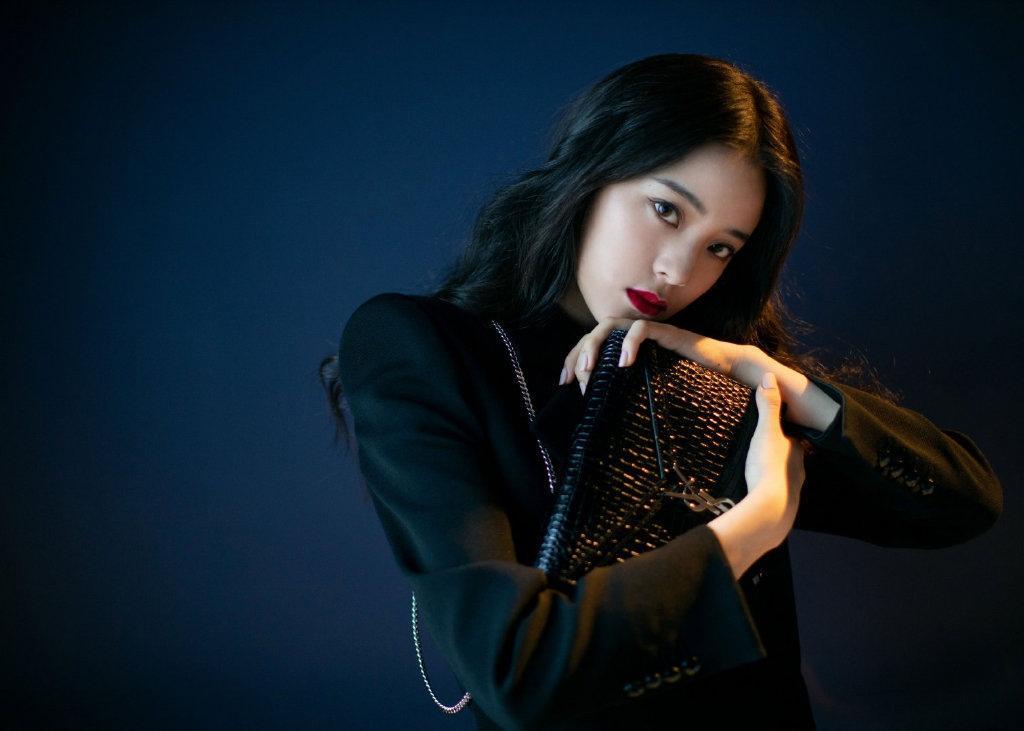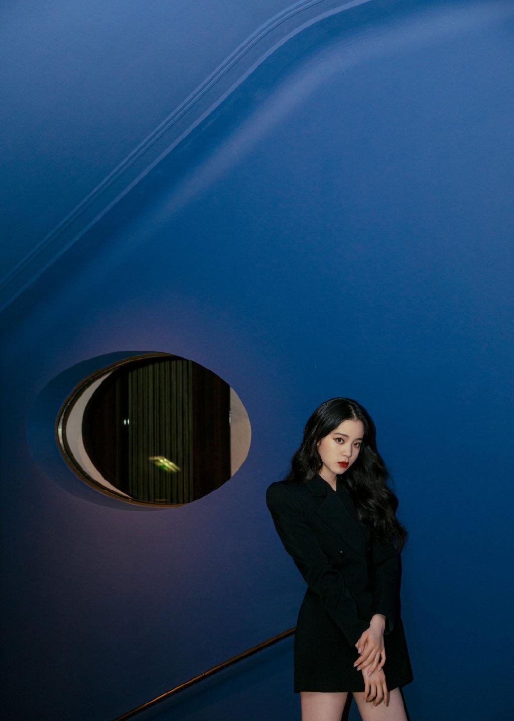 图集介绍:欧阳娜娜一身黑色垫肩西装,红唇甜酷有型,长腿西装杀,气场十足。