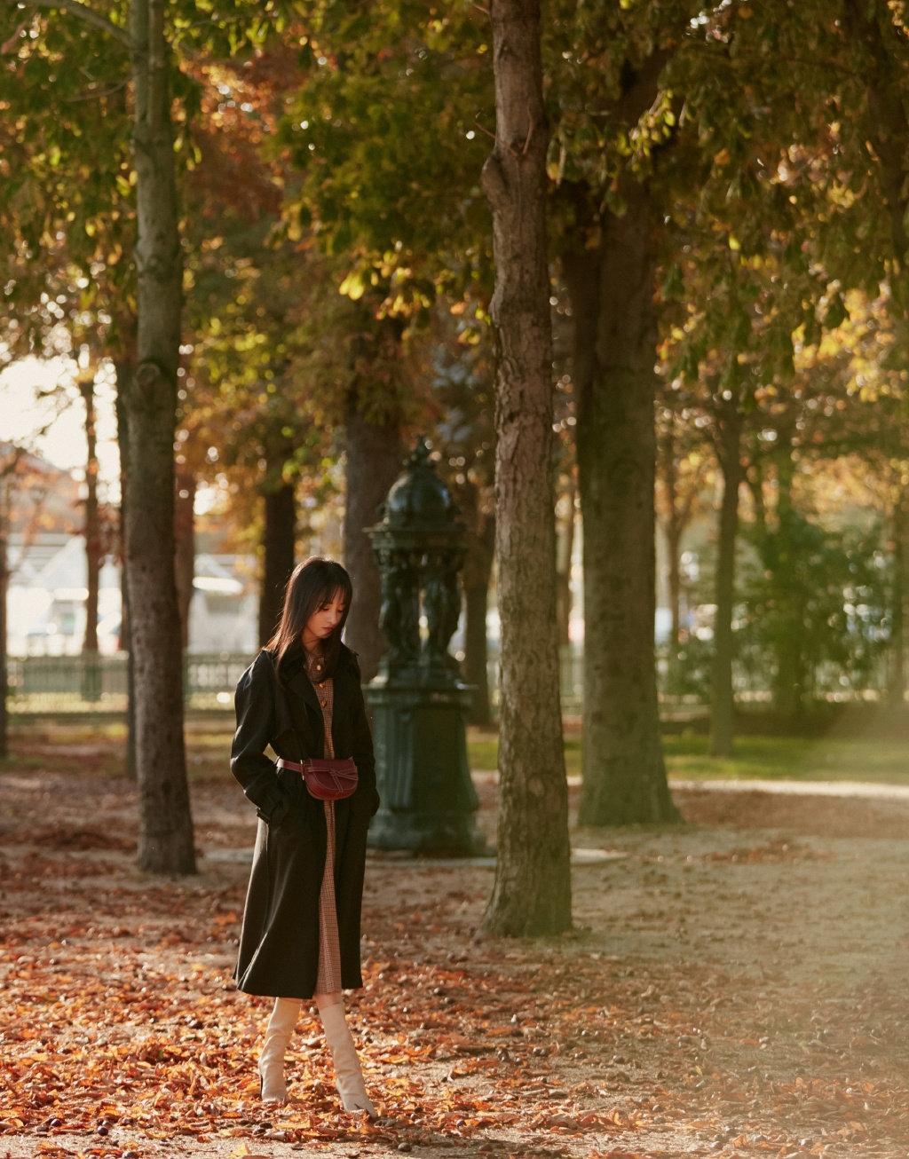 图集介绍:郑爽漫步于阳光明媚的巴黎街头,她穿着黑风衣与格纹裙,甜美少女复古风的小爽,是让人心动的模样!