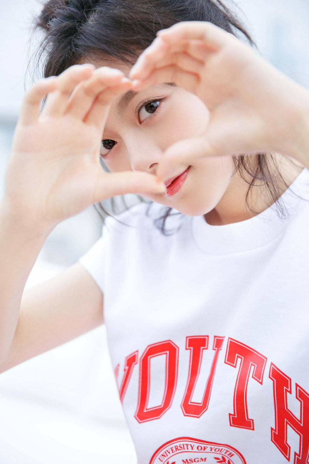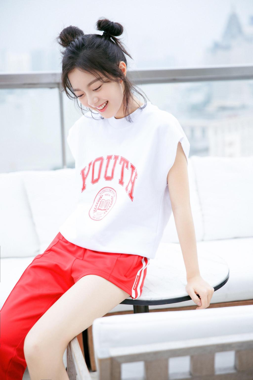 图集介绍:赵今麦一身白色短T搭配红色运动裤,白色和红色碰撞交织青春洋溢。