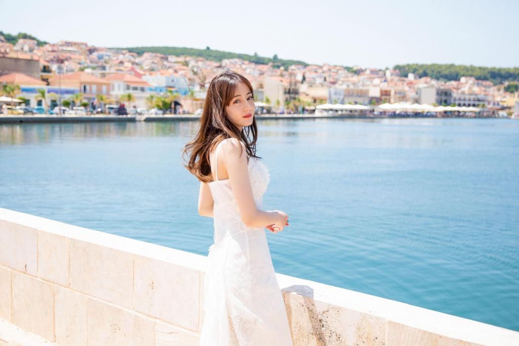 图集介绍:海岸之上的银色星空婚纱造型;艳阳之下的吊带裙look,穿婚纱的热巴真的好美啊。