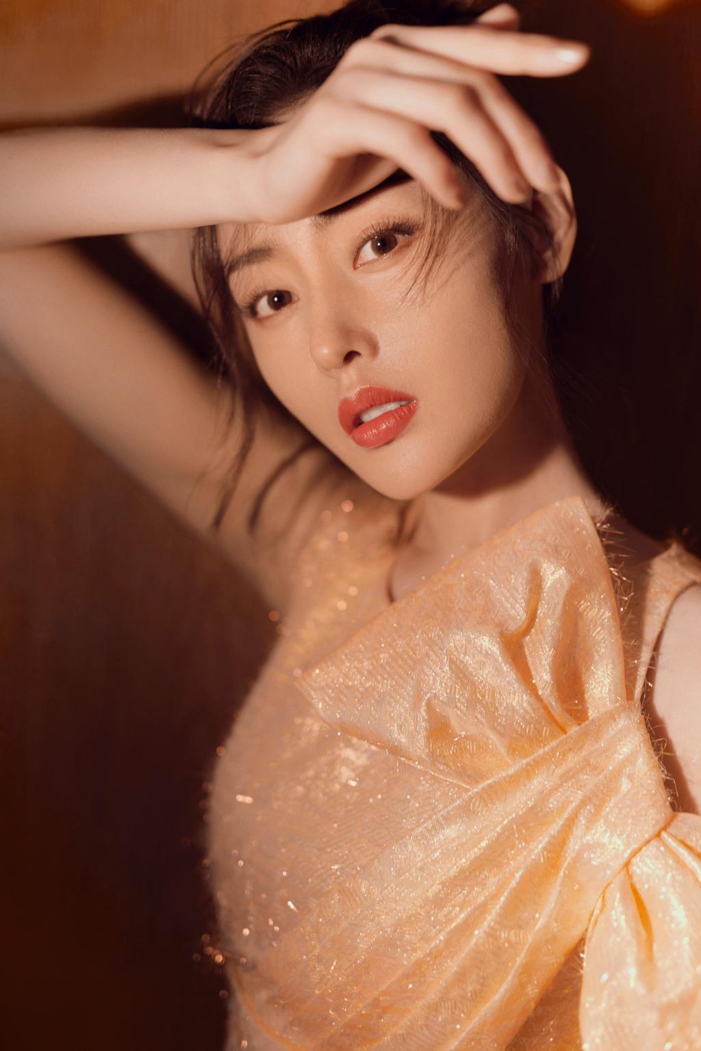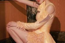 张天爱香槟色裙子
