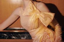 图集介绍:张天爱身穿香槟色蝴蝶结开衩裙,大号金色耳坠非常瞩目,好看得让人心动。