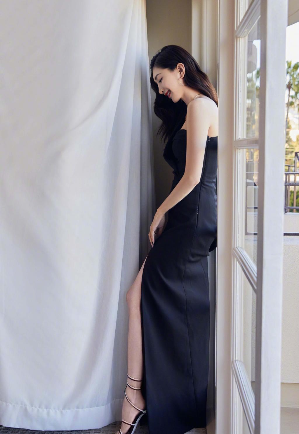 图集介绍:江疏影一袭剪裁独特的黑色西装裙,搭配卷发红唇,恰到好处的配饰点缀,大秀美腿之余还带着几分性感味道。