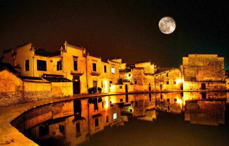 迷人的超级圆月风光