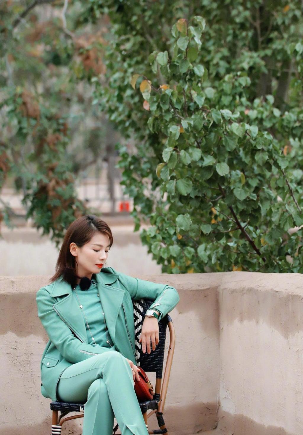 图集介绍:刘涛穿着一袭薄荷绿机车套装,配色大胆、造型利落。宛如冬日里的一抹亮色,明媚优雅。
