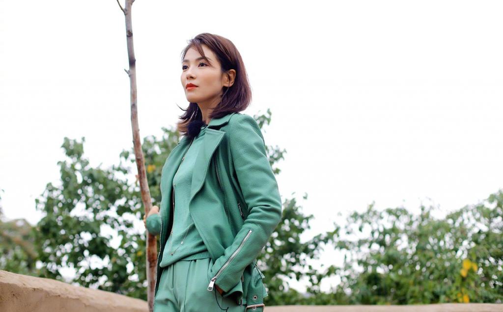 气质女神刘涛薄荷绿机车夹克写真