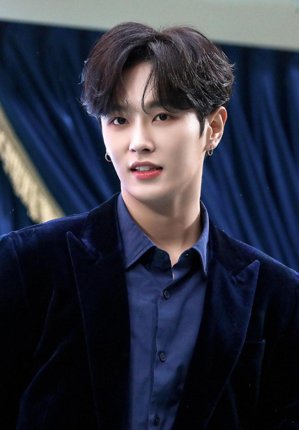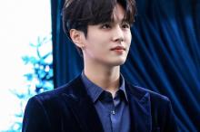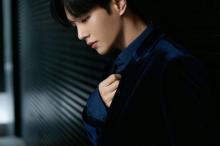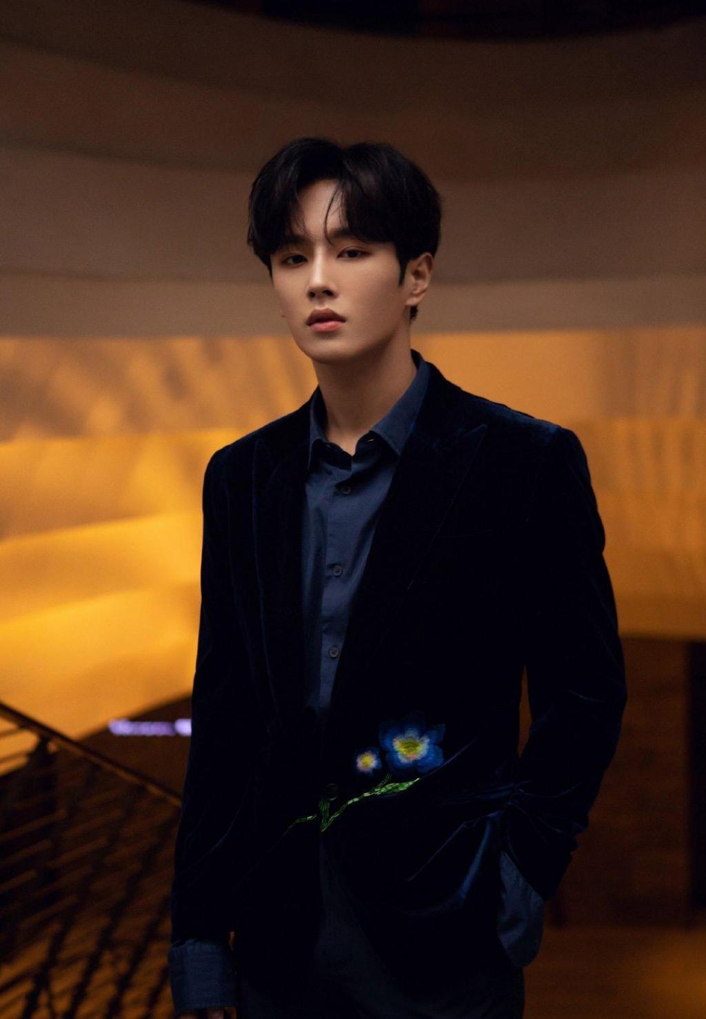 青春少年李汶翰蓝色丝绒西装帅气写真