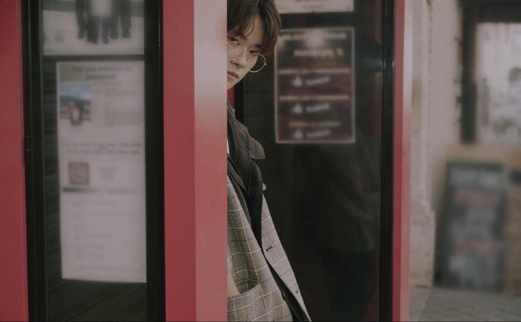 易烊千玺红色卫衣搭黑马甲时尚写真
