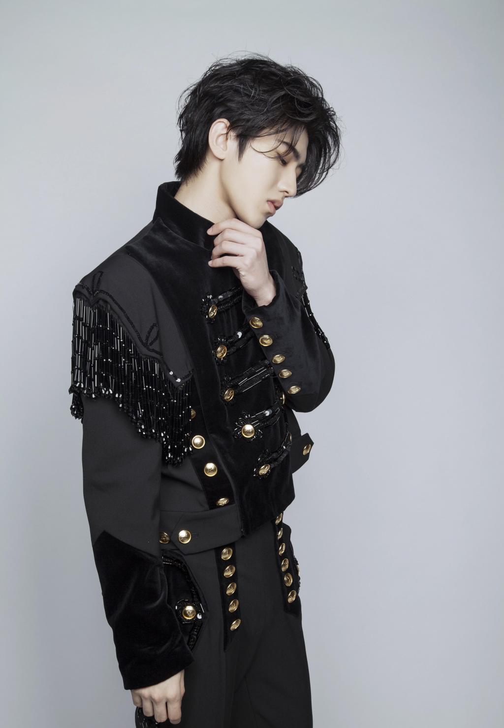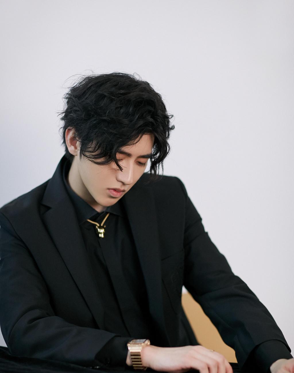 时尚小鲜肉蔡徐坤黑色西装迷人写真