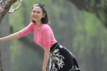Angelababy鲜花刺绣裙迷人写真