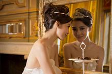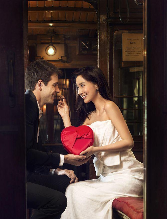 图集介绍:Angelababy典雅婚纱图片。在充满欧式起居室中演绎月满浓情的感觉,Angelababy穿上一身典雅白色婚纱,穿上婚纱的Angelababy看起来十分甜美。而在一辆充满情调的古典火车上甜蜜地与男模特儿一同分享巧克力,温馨浪漫。