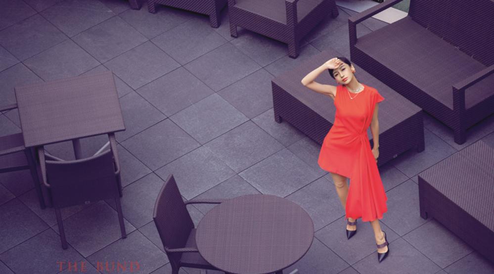 angelababy性感钻石鎏金裙户外迷人写真