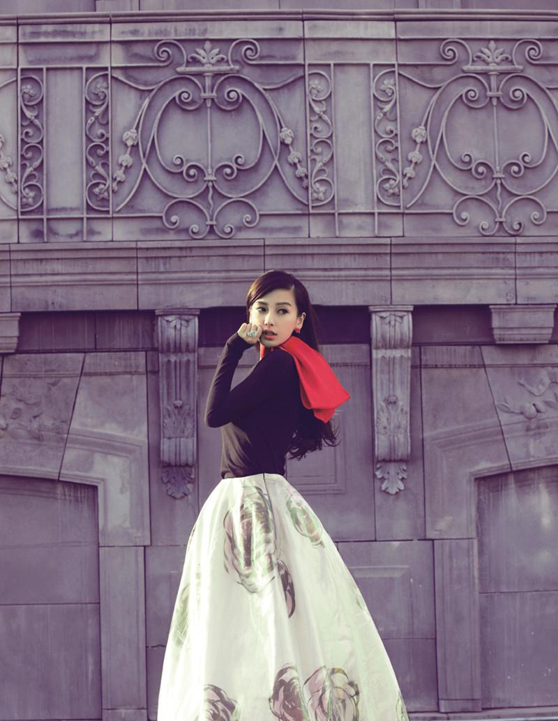 Angelababy鲜花刺绣裙迷人写真