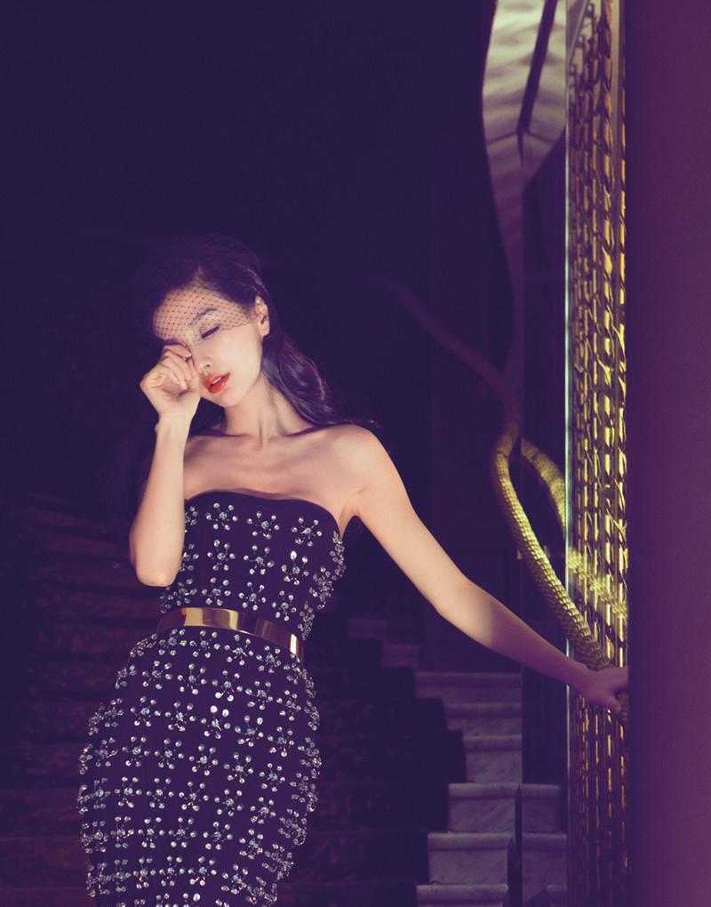 Angelababy黑色系礼服裙写真