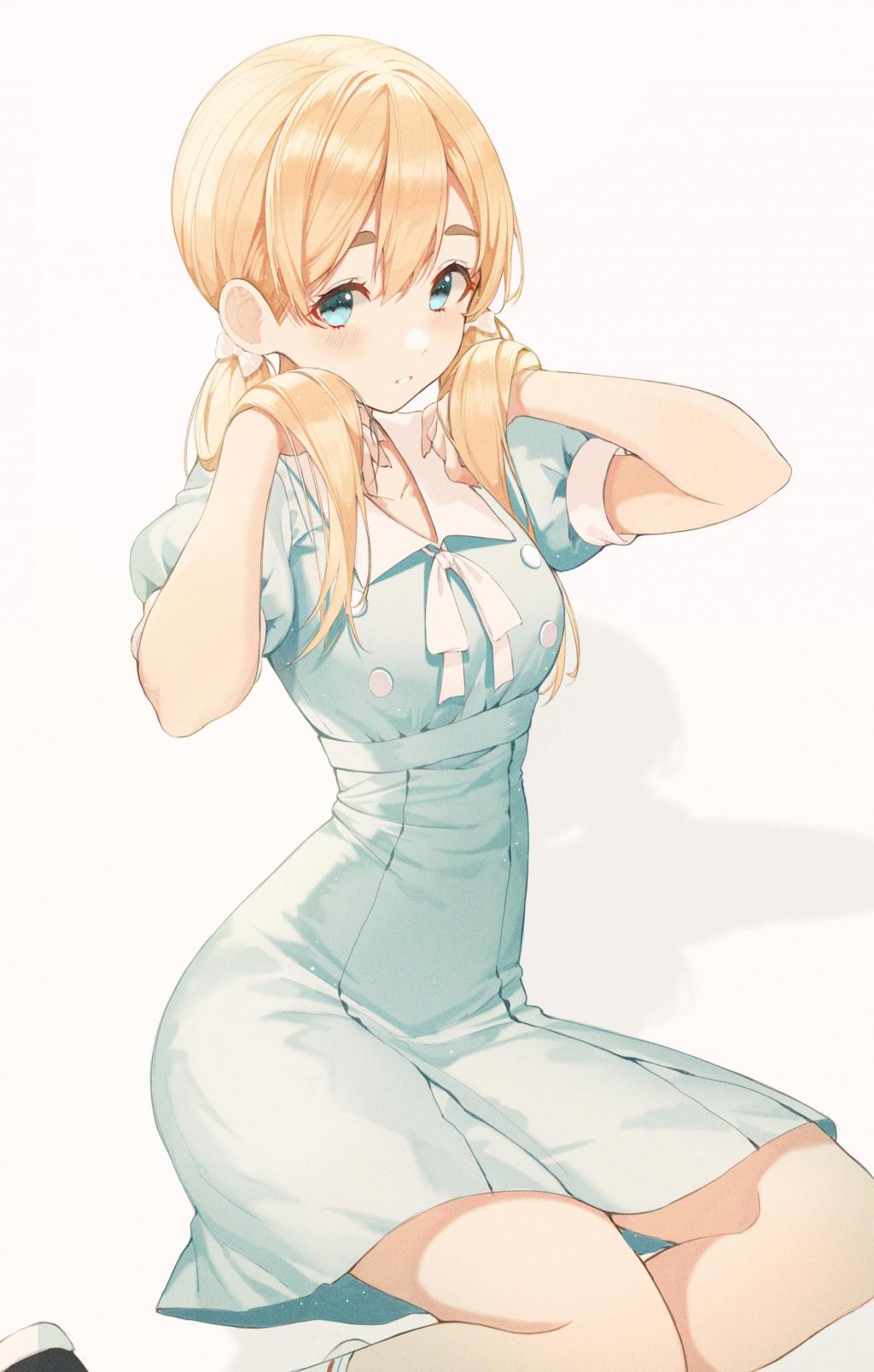 白色背景4K动漫美女甜美性感插画