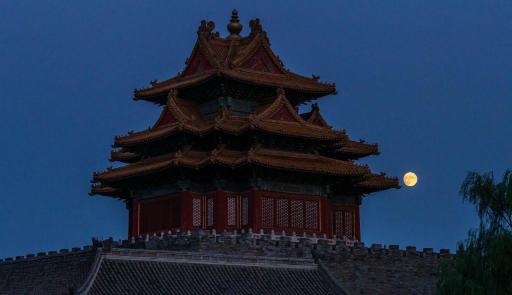 故宫角楼赏月亮