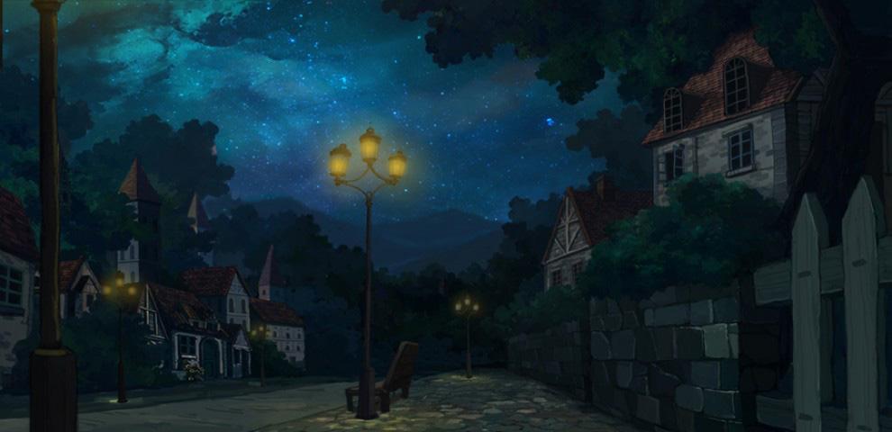 唯美动漫夜晚场景图片