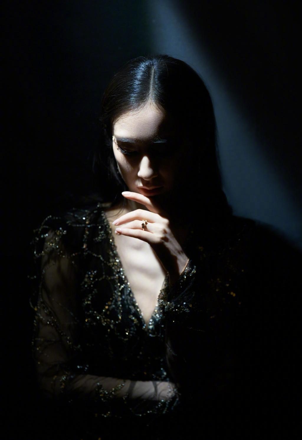 黄圣依深V露背性感黑裙写真
