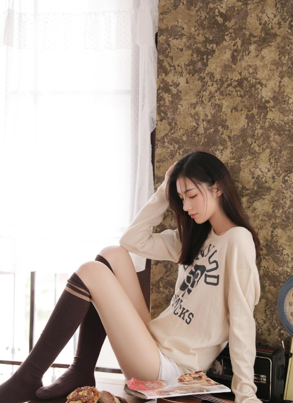 图集介绍:高挑长腿美女性感诱惑私房写真图片:分享一组性感美女高清写真,美女身穿长袖卫衣、超短裤,凸显姣好身材,长筒袜衬托得美腿越发白嫩诱人,充满诱惑。cr:微博——天航工作室。