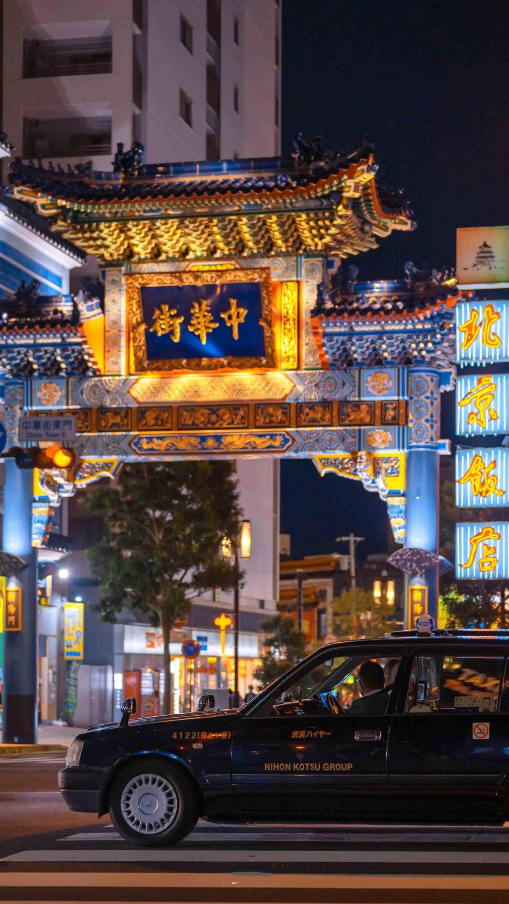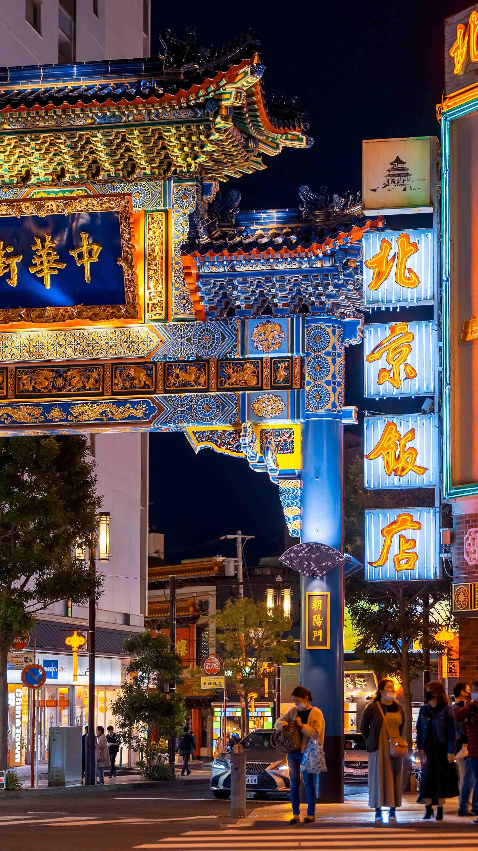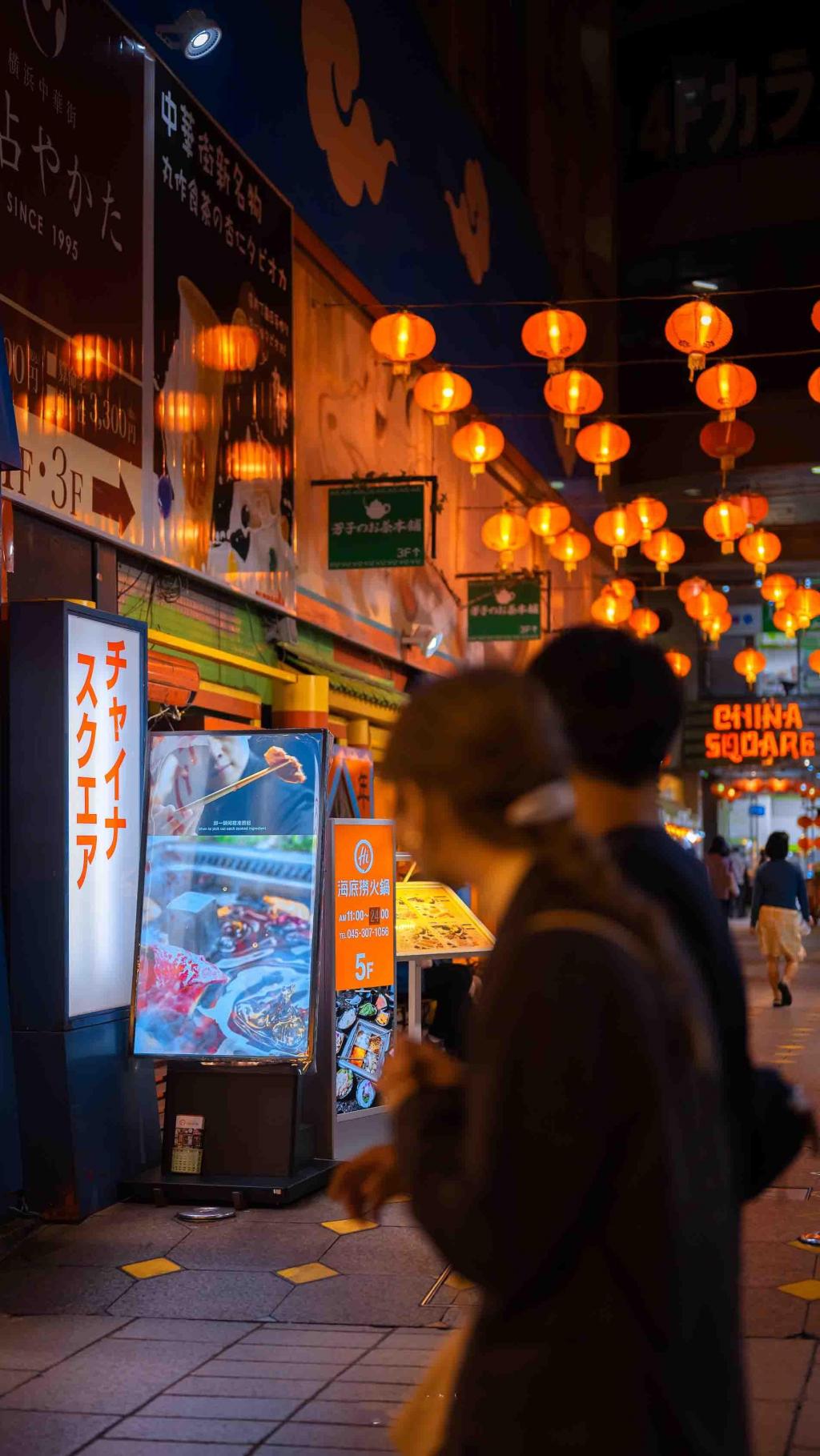 日本横滨中华城夜市街景