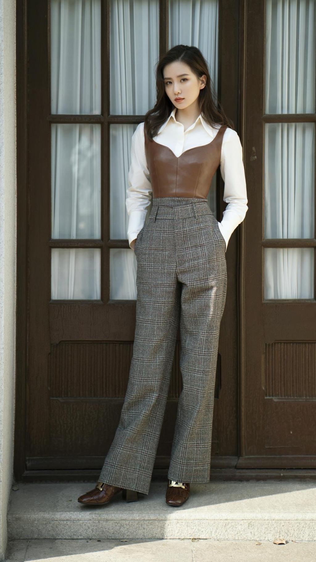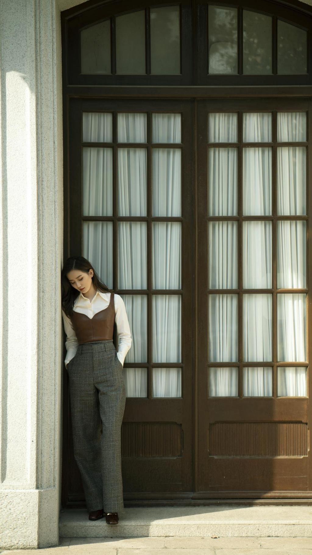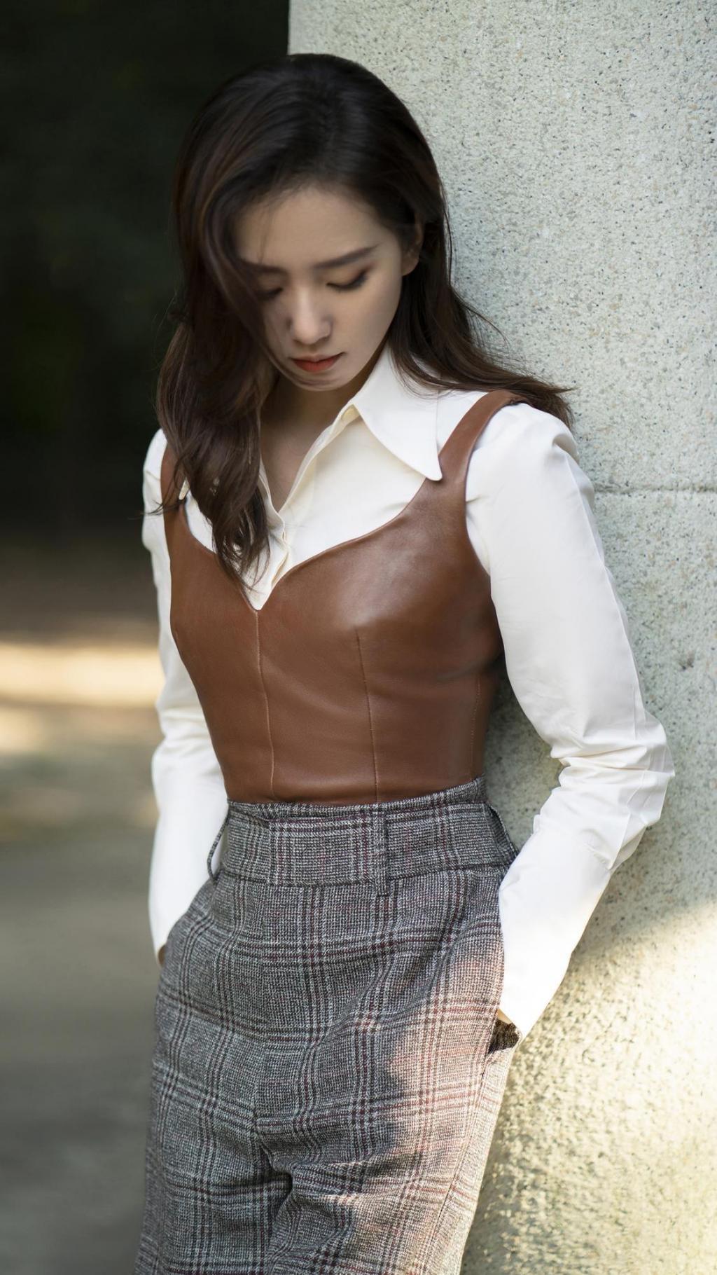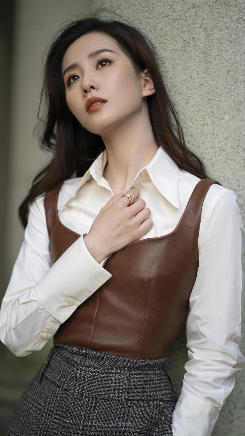 刘诗诗复古皮夹克时尚魅力写真