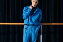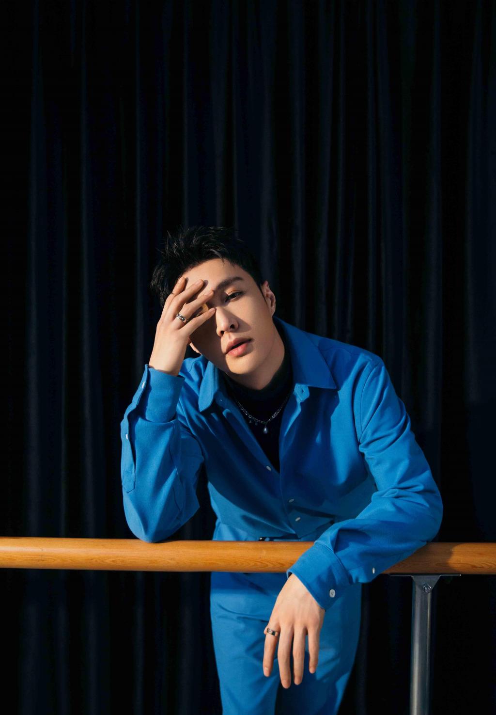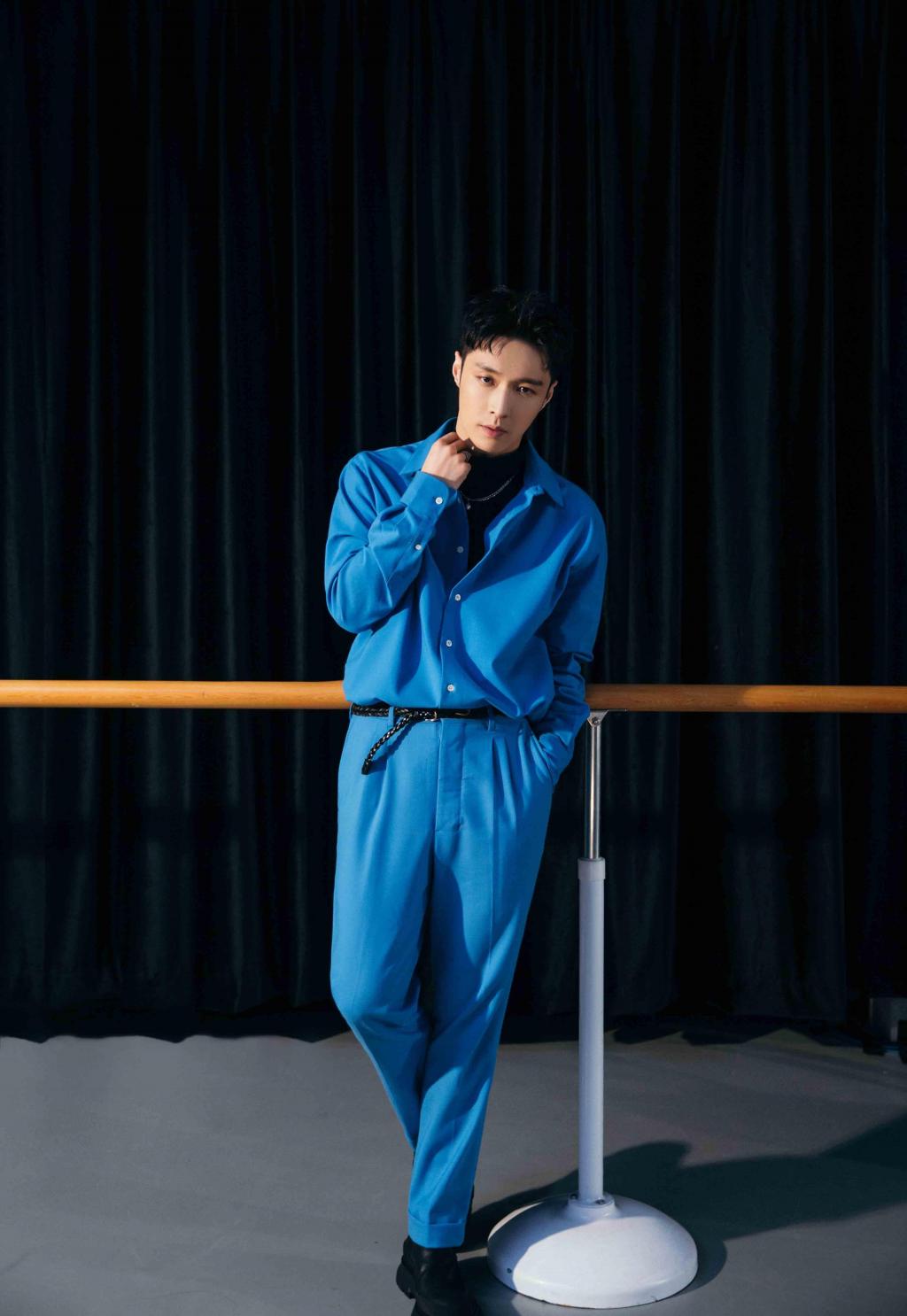 图集介绍:张艺兴时尚休闲写真图片:张艺兴身着蓝色连体工装裤搭黑色内衬,休闲不失时尚。